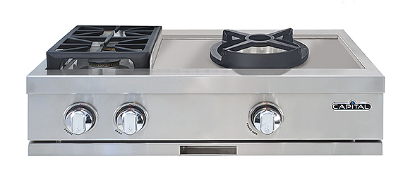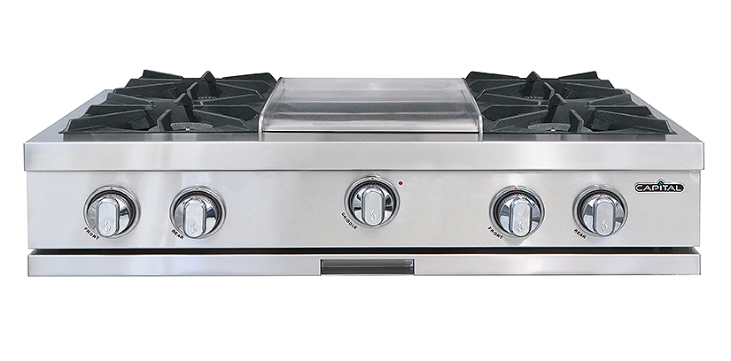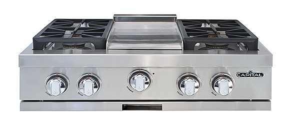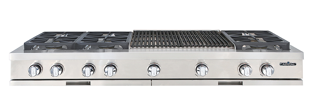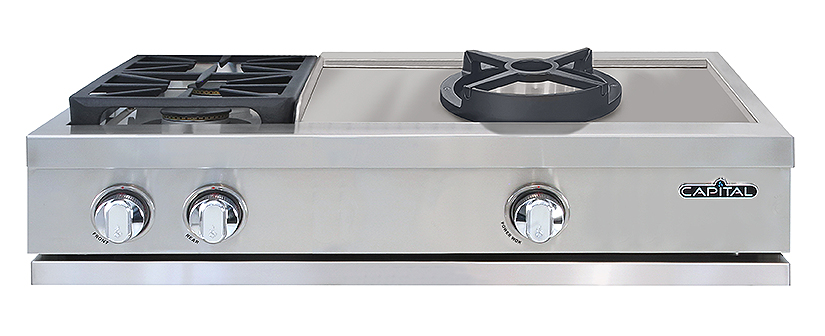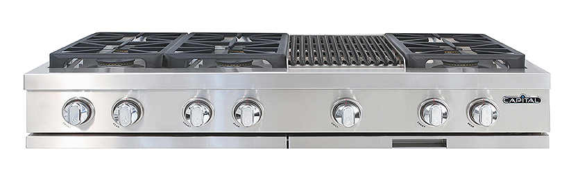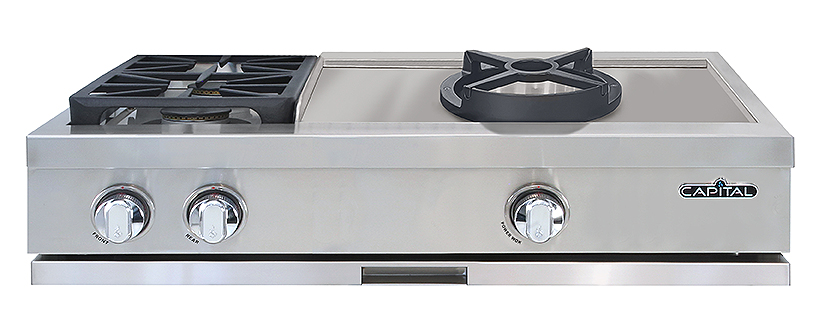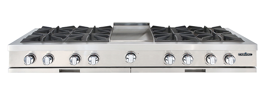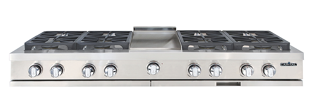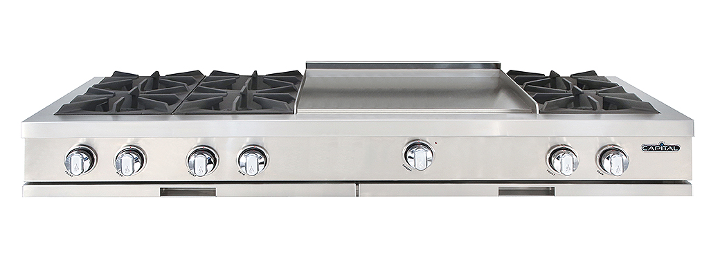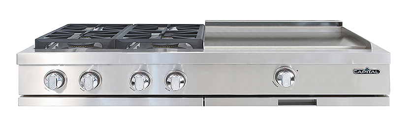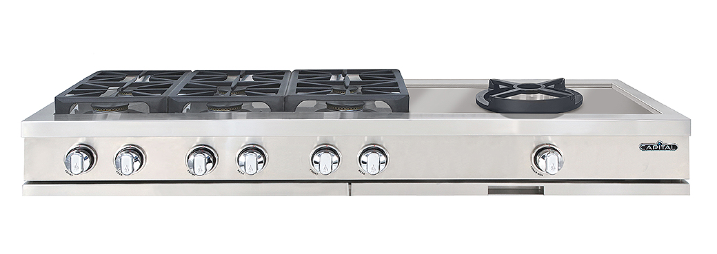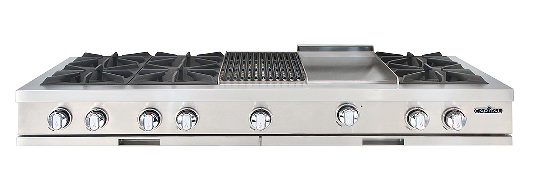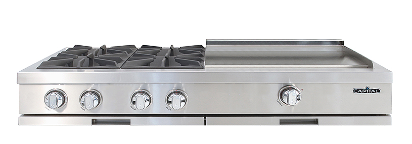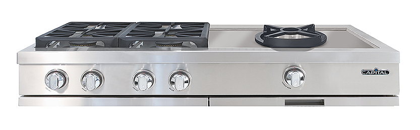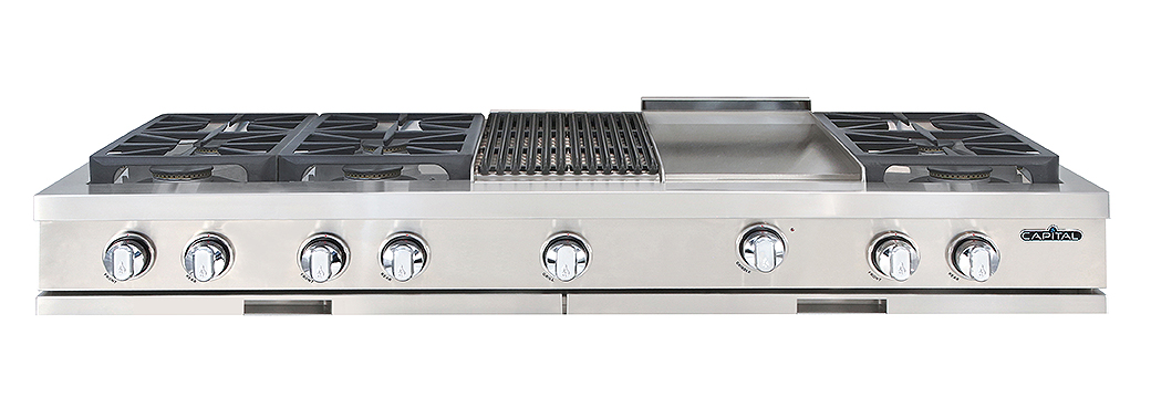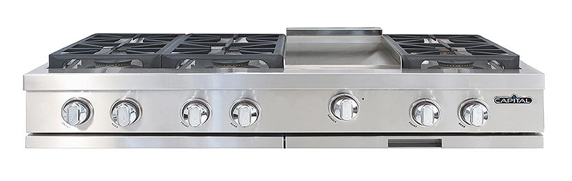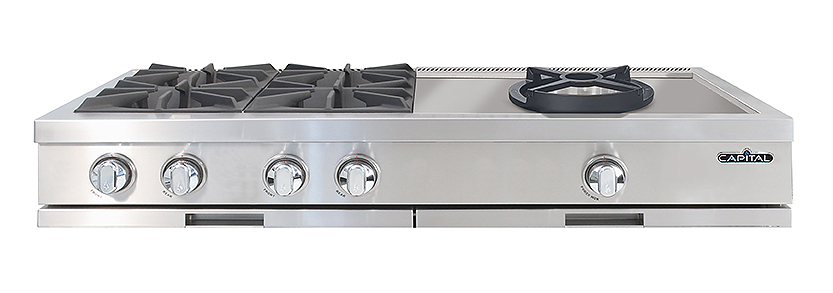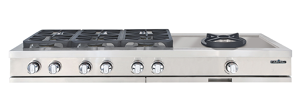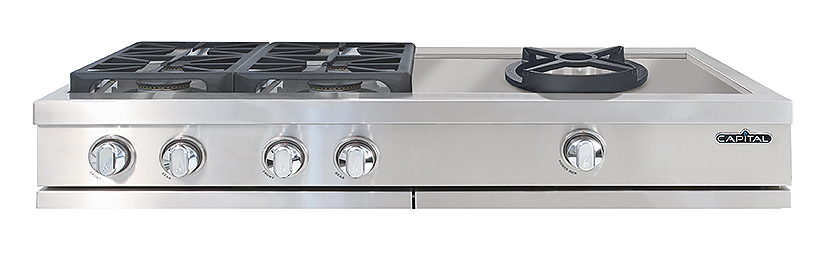 Capital rangetops offer the perfect solution for kitchen layouts that prioritize flexibility and design. Ideal for those who prefer wall ovens or a custom kitchen arrangement, a rangetop seamlessly integrates into your cabinetry, providing additional storage space beneath your cooking area. With a multitude of unique configurations and even custom placement of your burners, griddles, and grills, Capital let’s you arrange your cooking surface exactly how you want it.